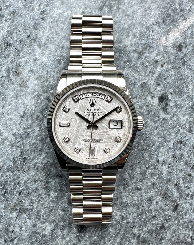Mit der Rolex Day-Date 36 Meteorite tragen Sie nicht einfach eine Uhr, sondern ein Stück Sternenstaub, eingefasst in Schweizer Präzision.