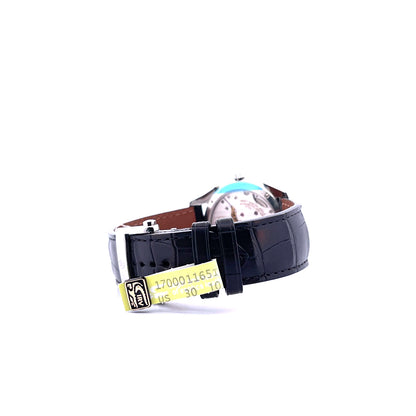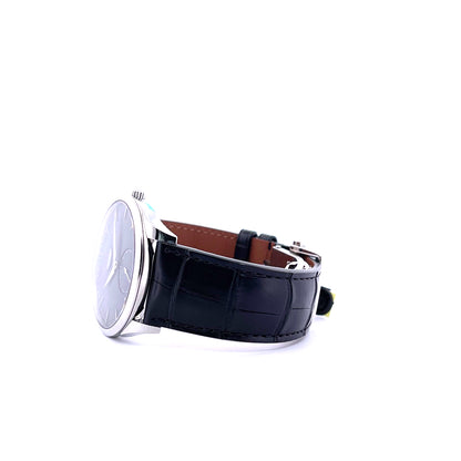Referenz: PFC288-0001400-XA1442. Die Tonda 1950 von Parmigiani Fleurier ist ein Meisterwerk der Uhrmacherkunst, das durch seine exquisite Eleganz und technische Raffinesse besticht. Mit einem minimalistischen Zifferblatt, das in einem tiefschwarzen Hintergrund erstrahlt, zieht diese Armbanduhr die Blicke auf sich und verkörpert die perfekte Symbiose aus modernem Design und klassischer Ästhetik. Die schlanken, silbernen Stunden- und Minutenzeiger sowie die feinen Stundenindizes verleihen der Uhr eine zeitlose Anmut, die sowohl im Alltag als auch zu besonderen Anlässen glänzt.Das polierte Edelstahlgehäuse, das sich durch seine glatte, runde Form auszeichnet, bietet nicht nur eine ansprechende Optik, sondern auch eine bemerkenswerte Robustheit. Bei der 6-Uhr-Position befindet sich ein kleineres Zifferblatt für die Sekundenanzeige, das dem Design eine subtile Komplexität verleiht und die technische Präzision der Tonda 1950 unterstreicht. Jedes Element dieser Uhr ist sorgfältig gestaltet, um sowohl Funktionalität als auch Stil zu gewährleisten.Das dunkel gehaltene Armband mit Krokodilprägung ergänzt das Gesamtbild und sorgt für einen luxuriösen Tragekomfort, der den hohen Ansprüchen von Uhrenliebhabern gerecht wird. Die Tonda 1950 ist nicht nur ein Zeitmesser, sondern ein Ausdruck von Lebensstil und Eleganz, der die Persönlichkeit des Trägers unterstreicht.In einer Welt, in der Zeit kostbar ist, bietet die Tonda 1950 von Parmigiani Fleurier nicht nur die Funktionalität einer präzisen Zeitmessung, sondern auch die Möglichkeit, sich mit einem Meisterwerk der Uhrmacherkunst zu umgeben. Diese Uhr ist ein Statement für Stil und Qualität, das jeden Moment zu etwas Besonderem macht und den Träger in den Mittelpunkt der Aufmerksamkeit rückt.
